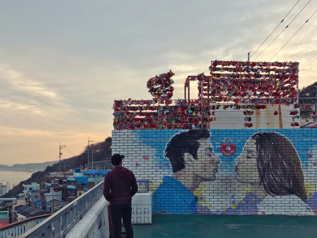 The visitor centre provides a map which recommends different sightseeing routes (although it may be more fun to carve out your own route and get lost in the maze of twisting alleys). The map also highlights featured artworks, such as the creatively named “Fish Swimming Through The Alley”. Fish are a recurring theme here, which I suppose makes sense since fishing has always been an important industry for Busan, the country’s biggest port. (No visit to Busan would be complete without a visit to Jagalchi Fish Market, South Korea’s biggest. Incidentally, also featured in Black Panther.)